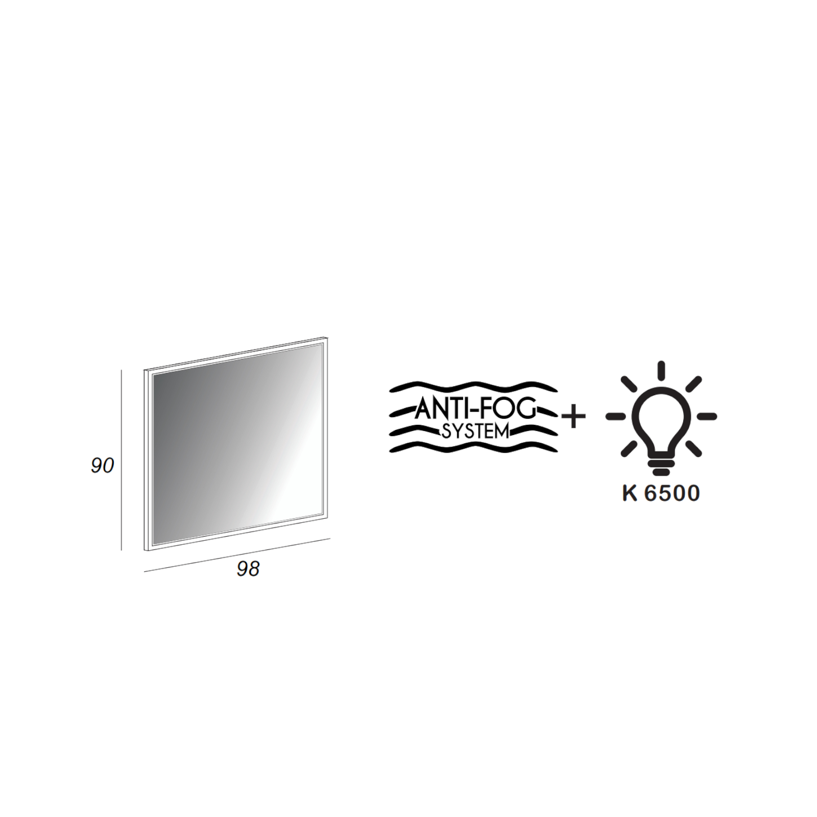 Specchio bagno 98X90 cm grigio nuvola con illuminazione a led e sistema antiappannamento.