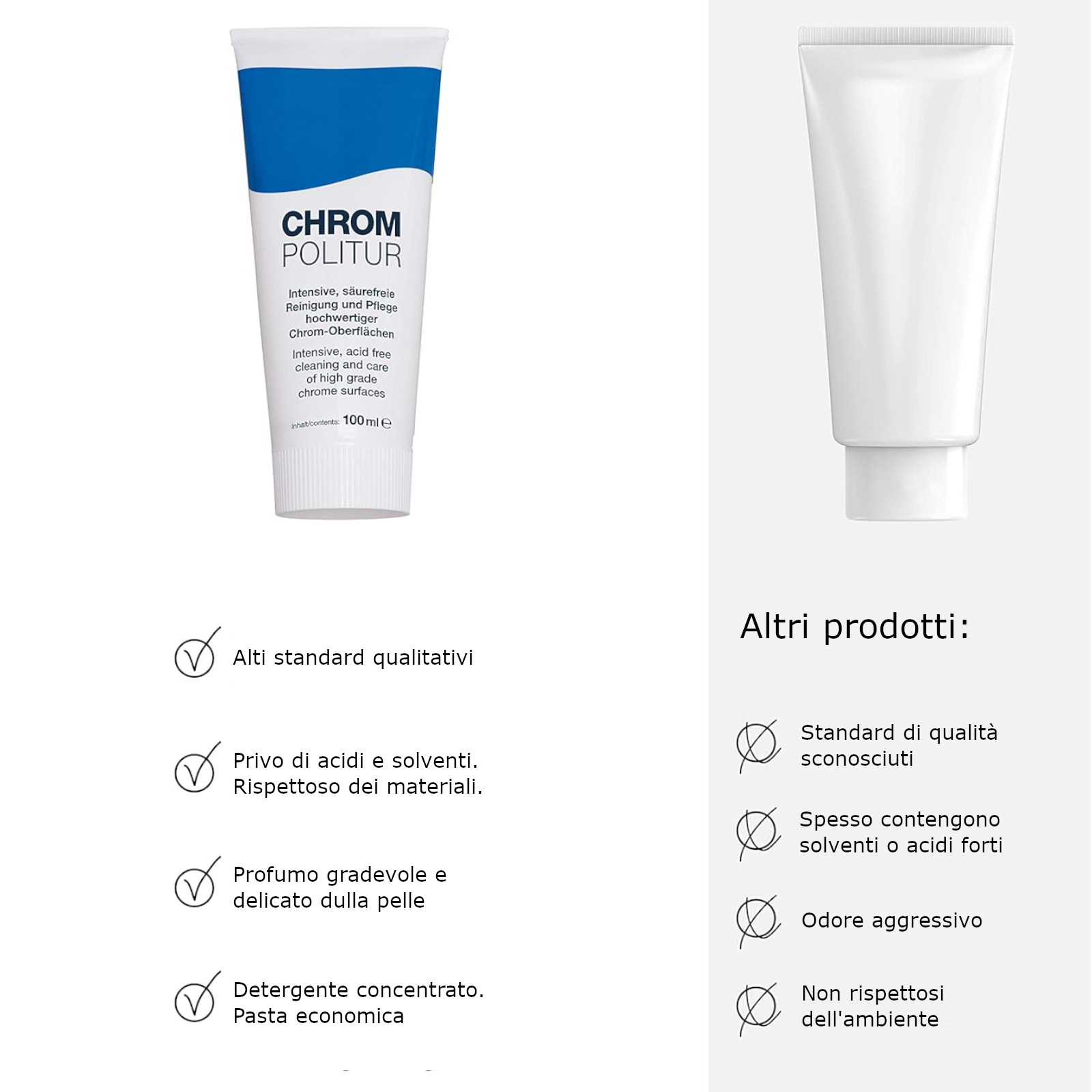 Pasta detergente lucidante 100 ml per tutte le superfici cromate lucide e opache