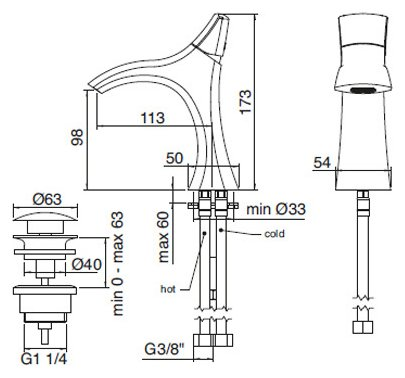 Miscelatore lavabo o bidet treemme hedo' con scarico click clack