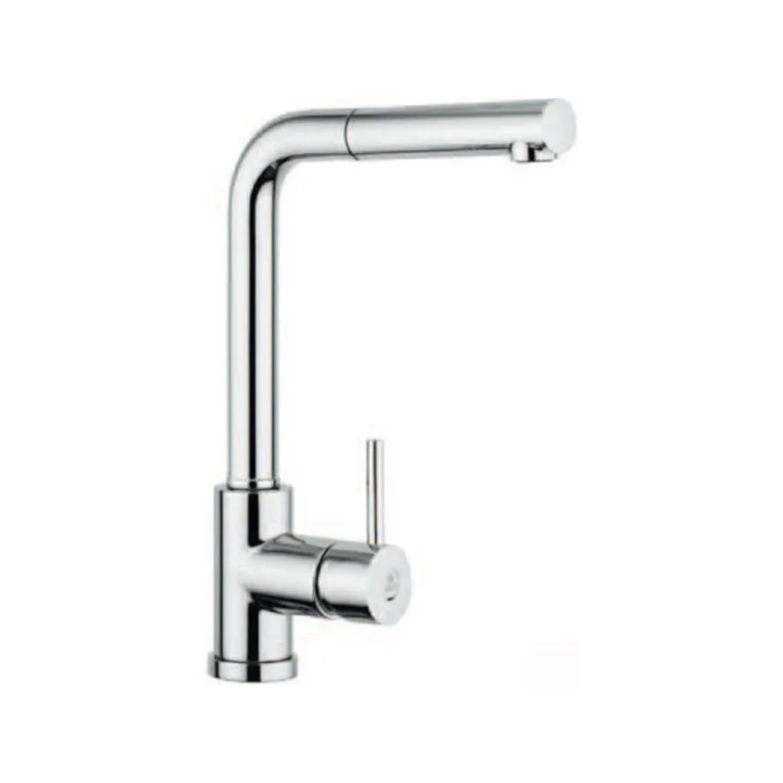 Miscelatore monocomando lavello cromato con canna girevole squadrata e doccia estraibile.