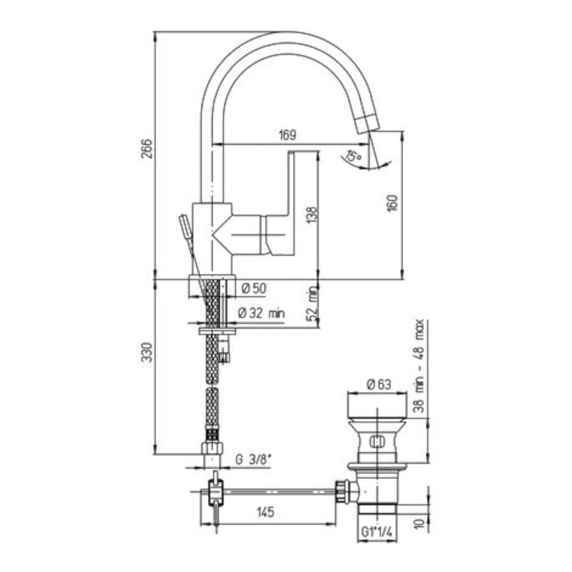 Miscelatore lavello piralla baci con canna alta orientabile in ottone cromo