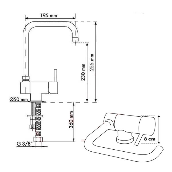 Miscelatore monocomando lavello sottofinestra argo messina con canna pieghevole
