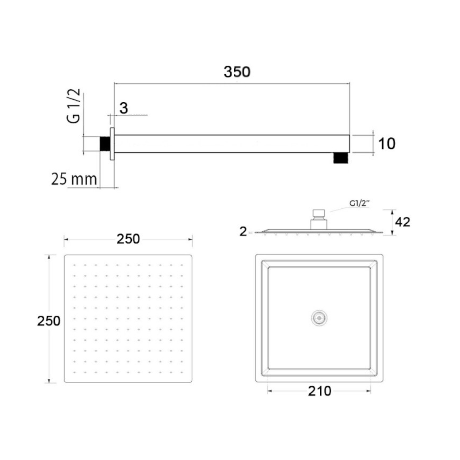Euroceramica - Kit doccia quadro nero opaco soffione 25x25 cm PVC
