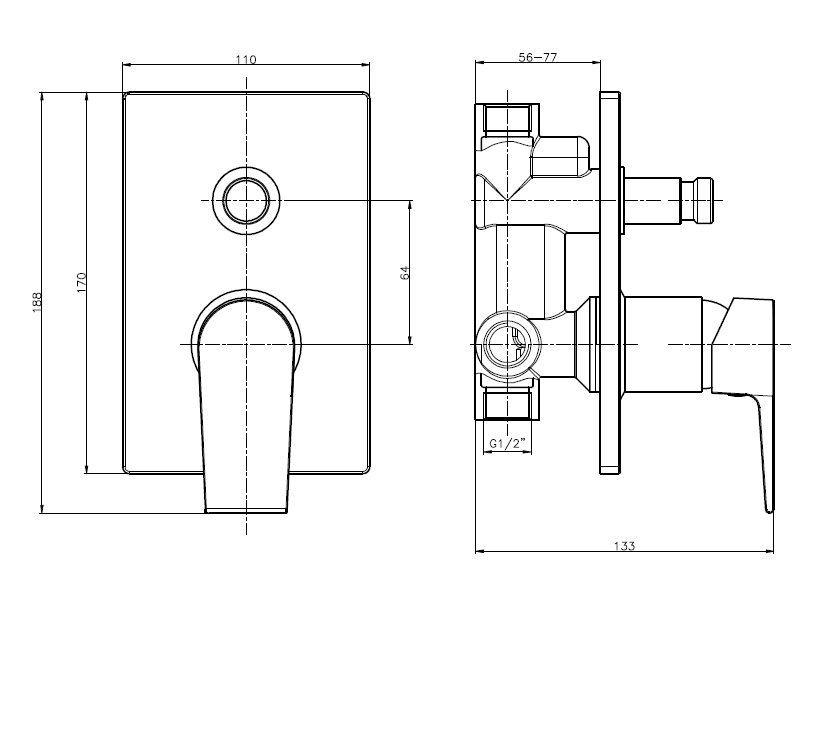 Rubinetteria Quaranta - Aria - Miscelatore Incasso Doccia con Deviatore Cromo