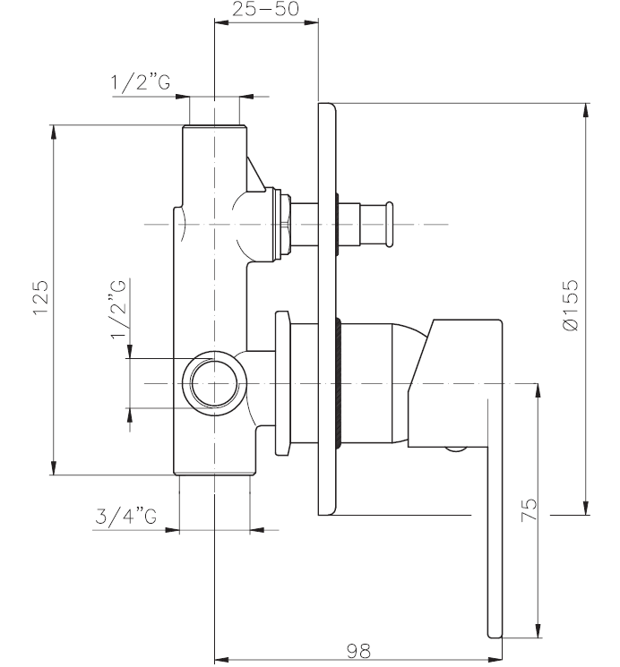 Quaranta - Sprint - Miscelatore incasso doccia con deviatore - Cromo - Ottone