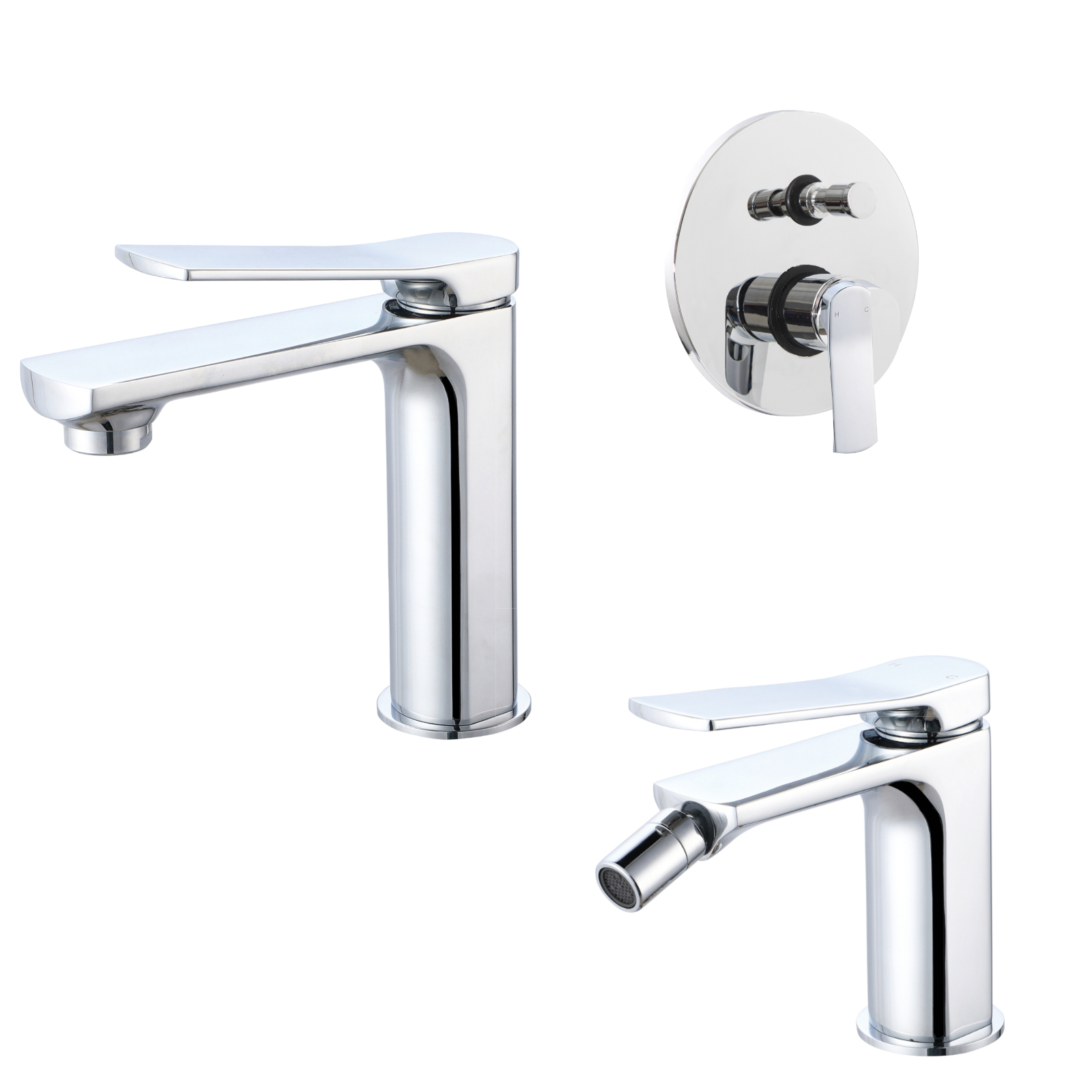 Miscelatore lavabo bidet e incasso doccia con deviatore cromo scarico click clack