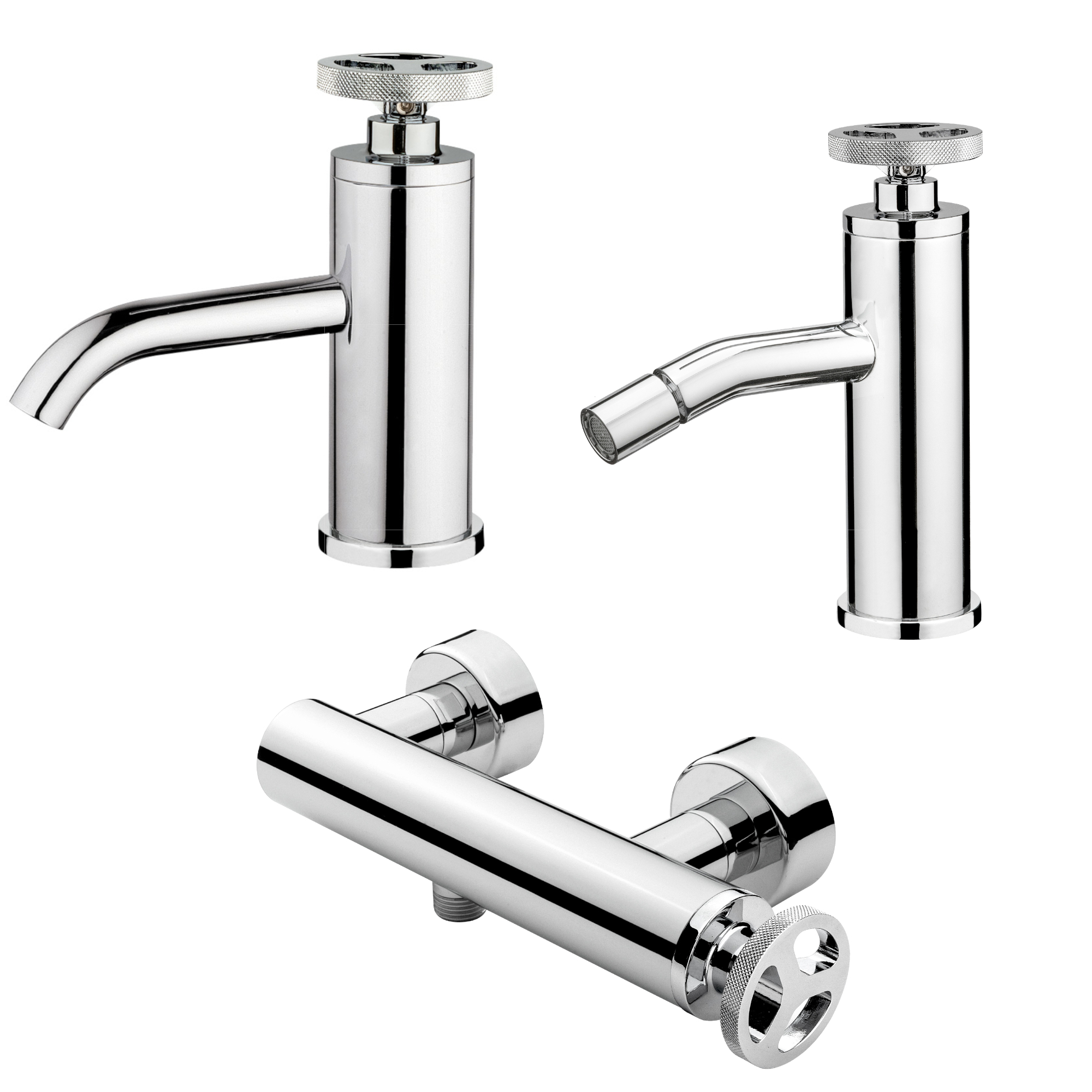 Set miscelatori bagno lavabo bidet ed esterno doccia mimi cromo scarico click clack