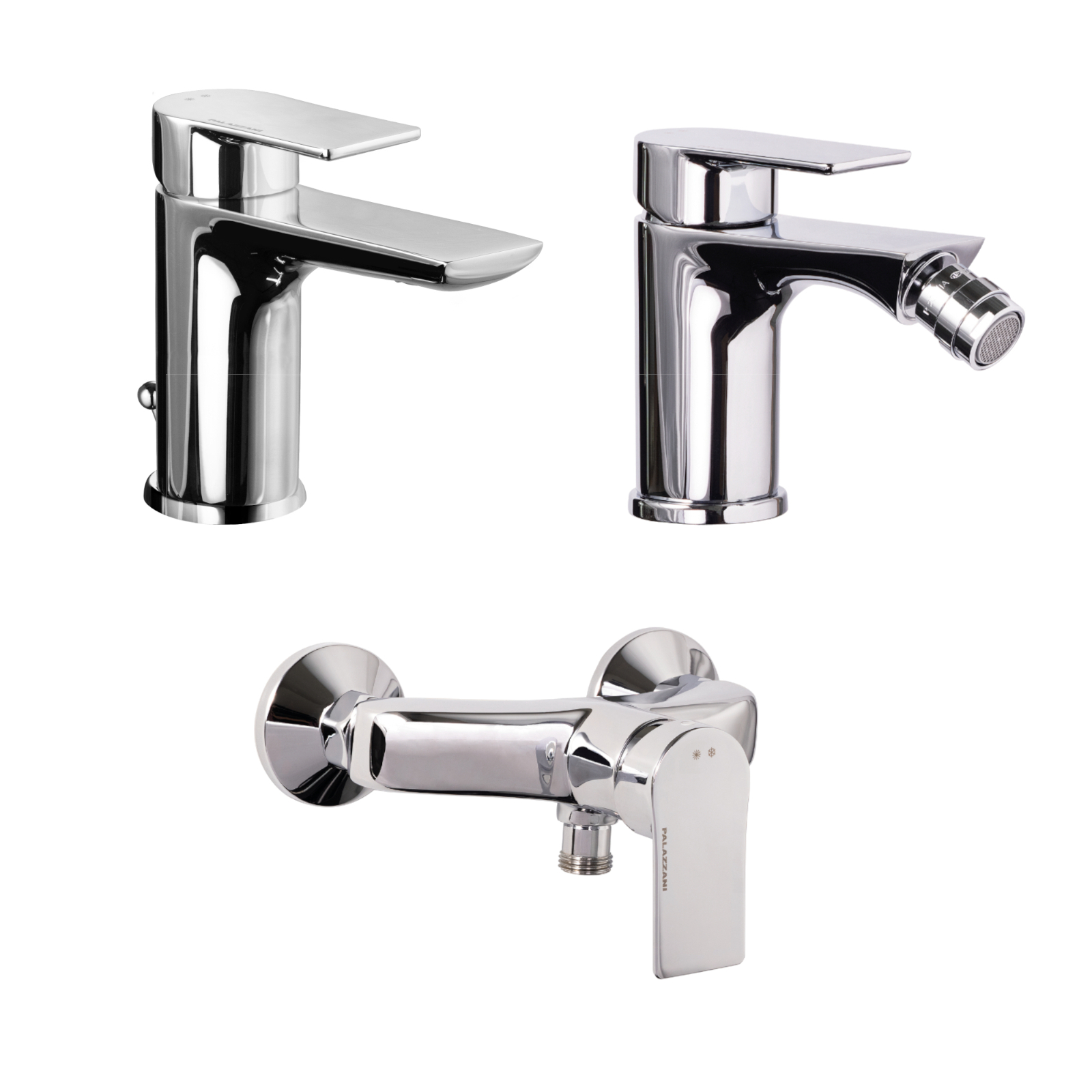 Set miscelatori palazzani qi lavabo bidet e esterno doccia cromo scarico tradizionale