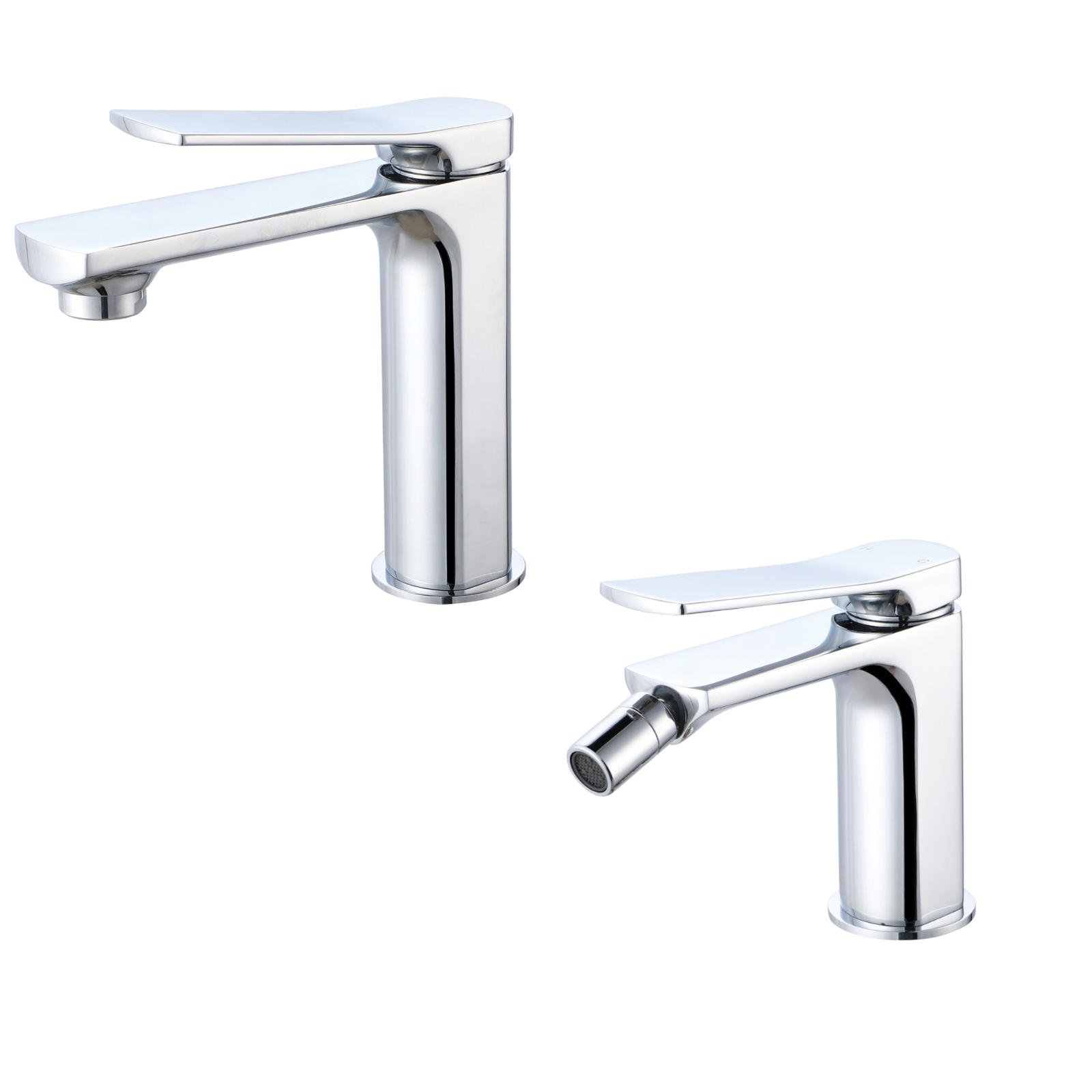 Il set di miscelatori bagno, della linea LM, composto da: miscelatore lavabo e bidet è caratterizzato da uno stile nuovo e unico.