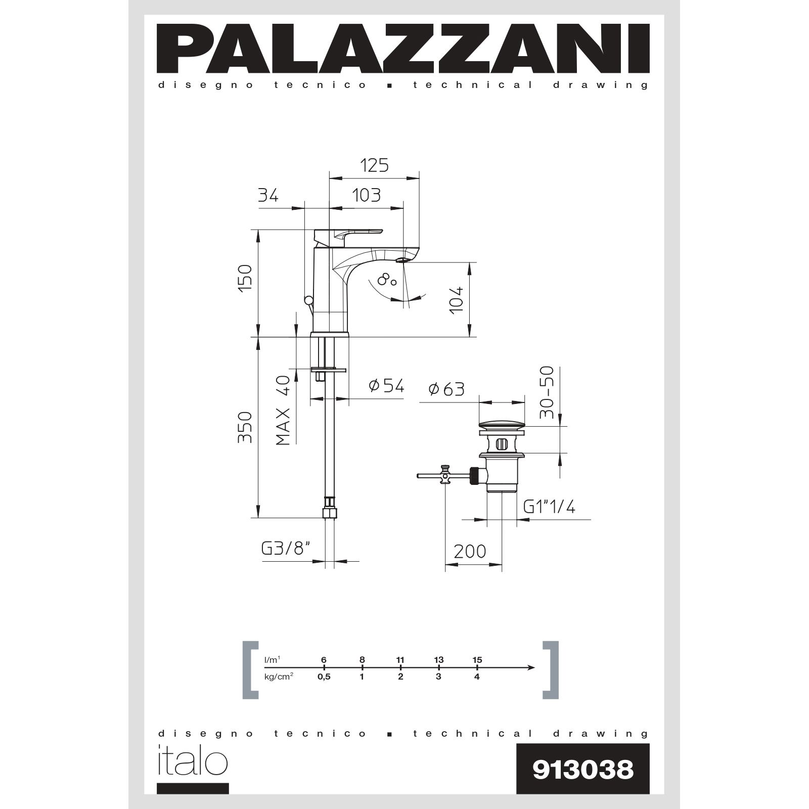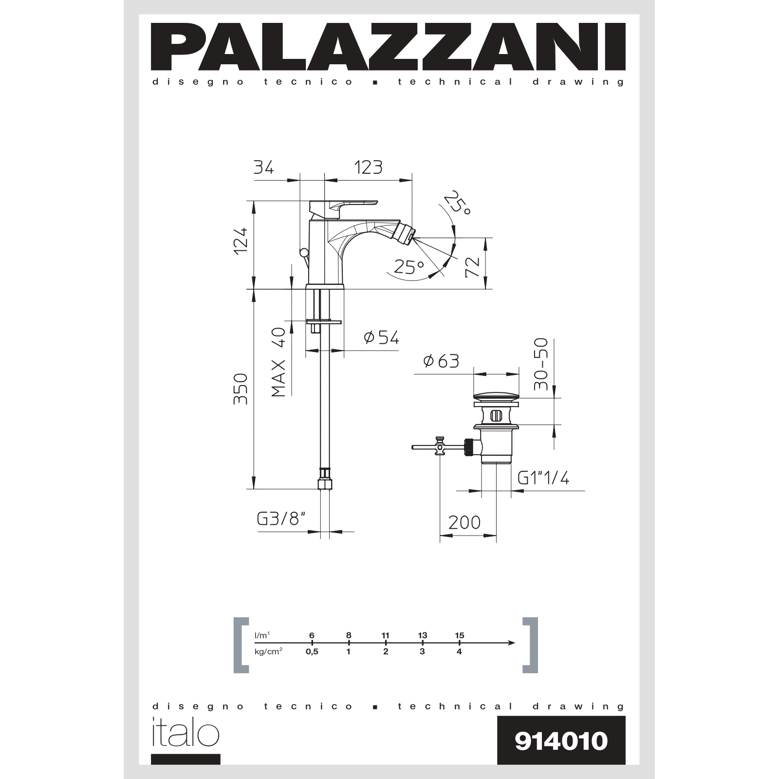 Set di miscelatori monocomando lavabo e bidet, con scarico automatico, Palazzani della serie ITALO.